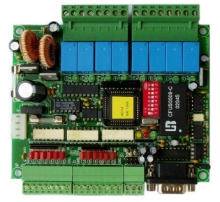 24 on-board relay outputs, each with a LED for status indication,